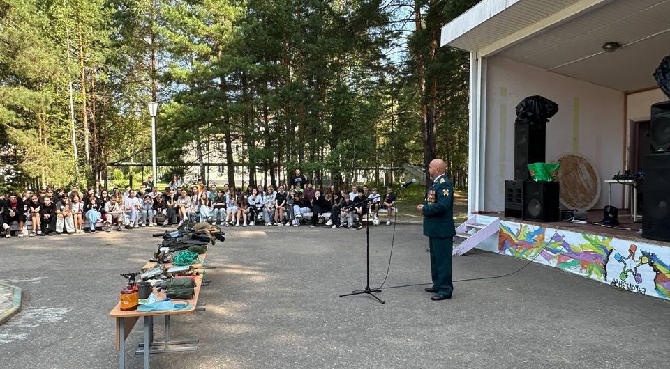 Сегодня в честь празднования Дня Государственного флага Российской Федерации нашем лагере прошла встреча с руководителем центра патриотического воспитания города Заречного, кавалером ордена мужества, участником специальной военной операции, подполковником запаса Степановым Андреем Владимировичем.