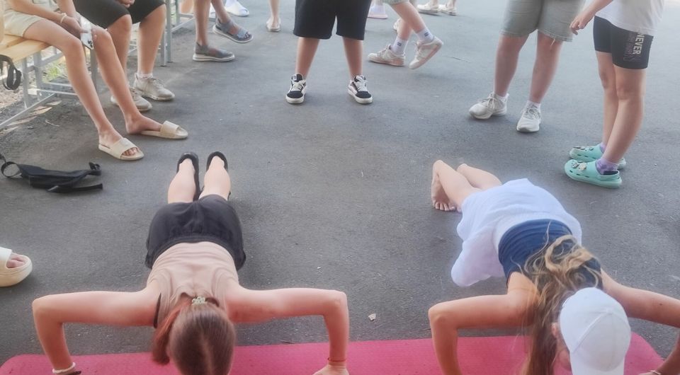 С 10 часов дети сдавали личные спортивные нормативы: отжимания, подтягивания, упражнения на пресс, прыжки в длину, прыжки через скакалку, наклоны.