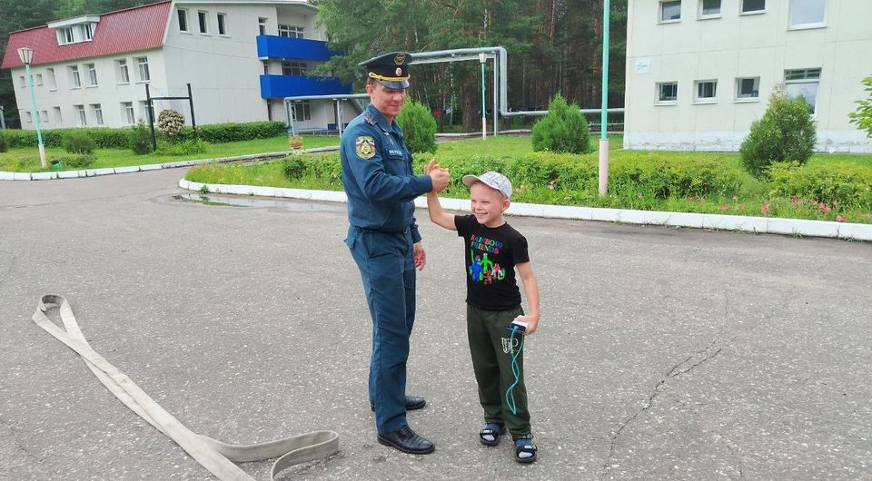 Показали содержание пожарной машины, ребята смогли примерить форму. В конце встречи прошла традиционная детская забава- обливание из гидранта.