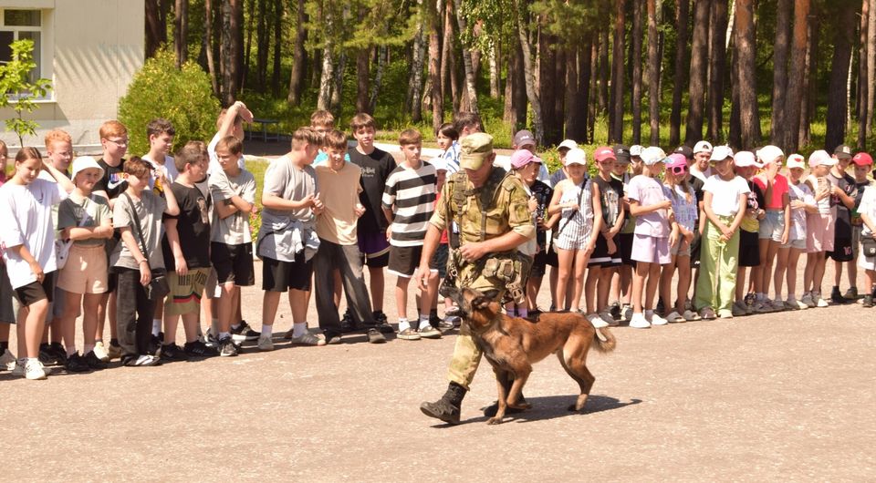 Интерактивное событие было проведено в нашем лагере совместно с военной частью г. Заречного. Среди гостей были специалисты-кинологи, которые показали дрессированных собак и рассказали об особенностях содержания служебных животных.