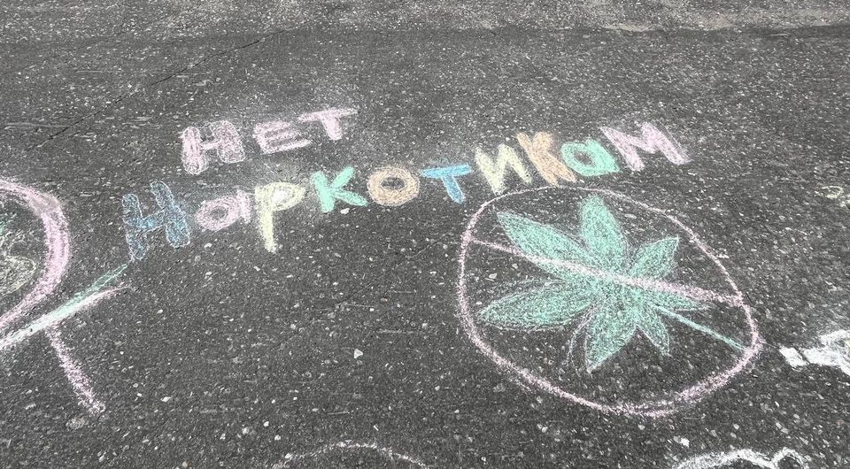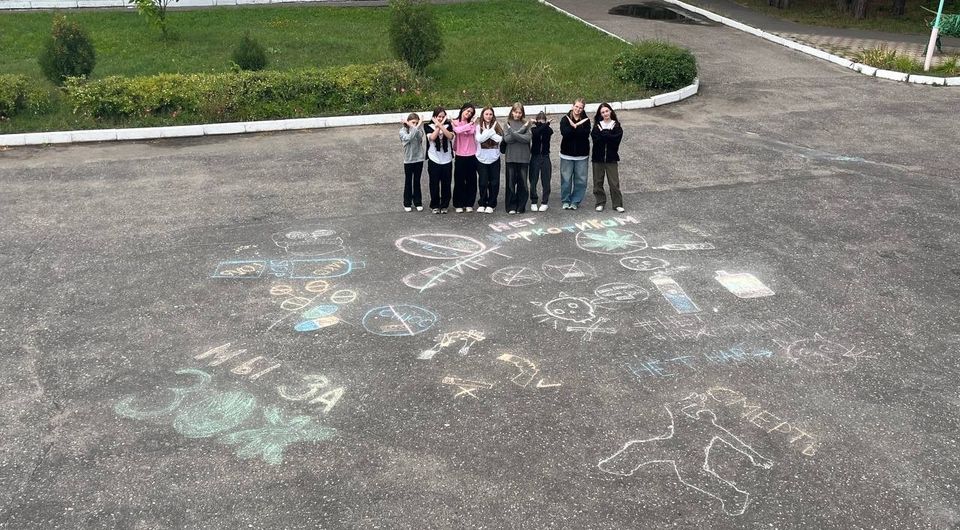 Старшие отряды с помощью рисунков на асфальте выразили свое негативное отношение ко всему, что губит наше здоровье.